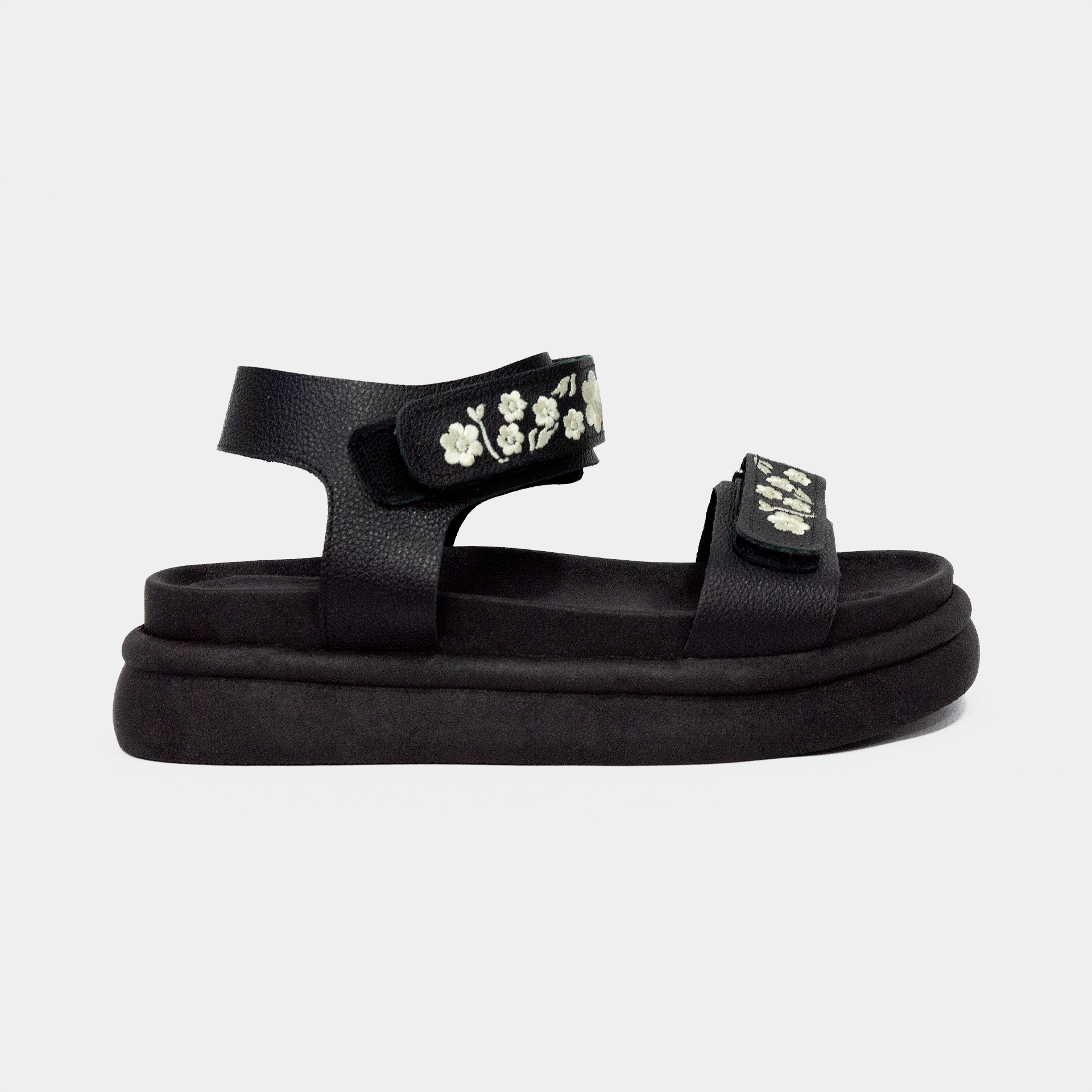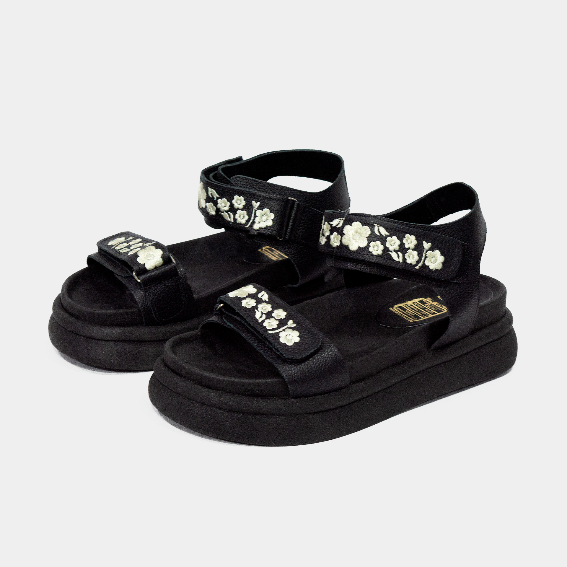 Esta sandalia está diseñada para quienes aman los detalles elegantes y la comodidad absoluta. Su estructura en cuero 100% genuino ofrece durabilidad y suavidad, mientras que las tiras cuentan con un bordado floral artesanal que la convierte en una pieza única y femenina. La plataforma ligera brinda estabilidad, y su sistema de ajuste con velcro permite un calce perfecto para usarla todo el día sin molestias.