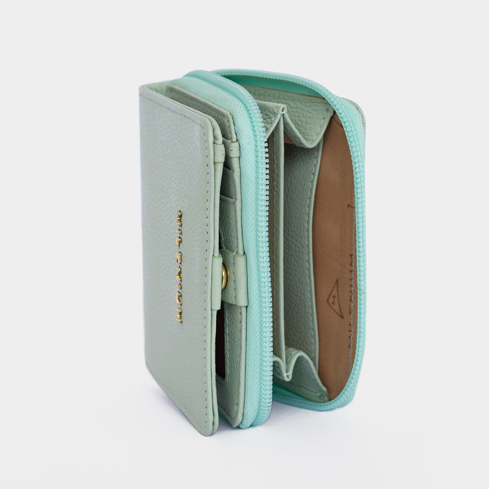 BILLETERA DAMA CUERO VERDE MENTA 216