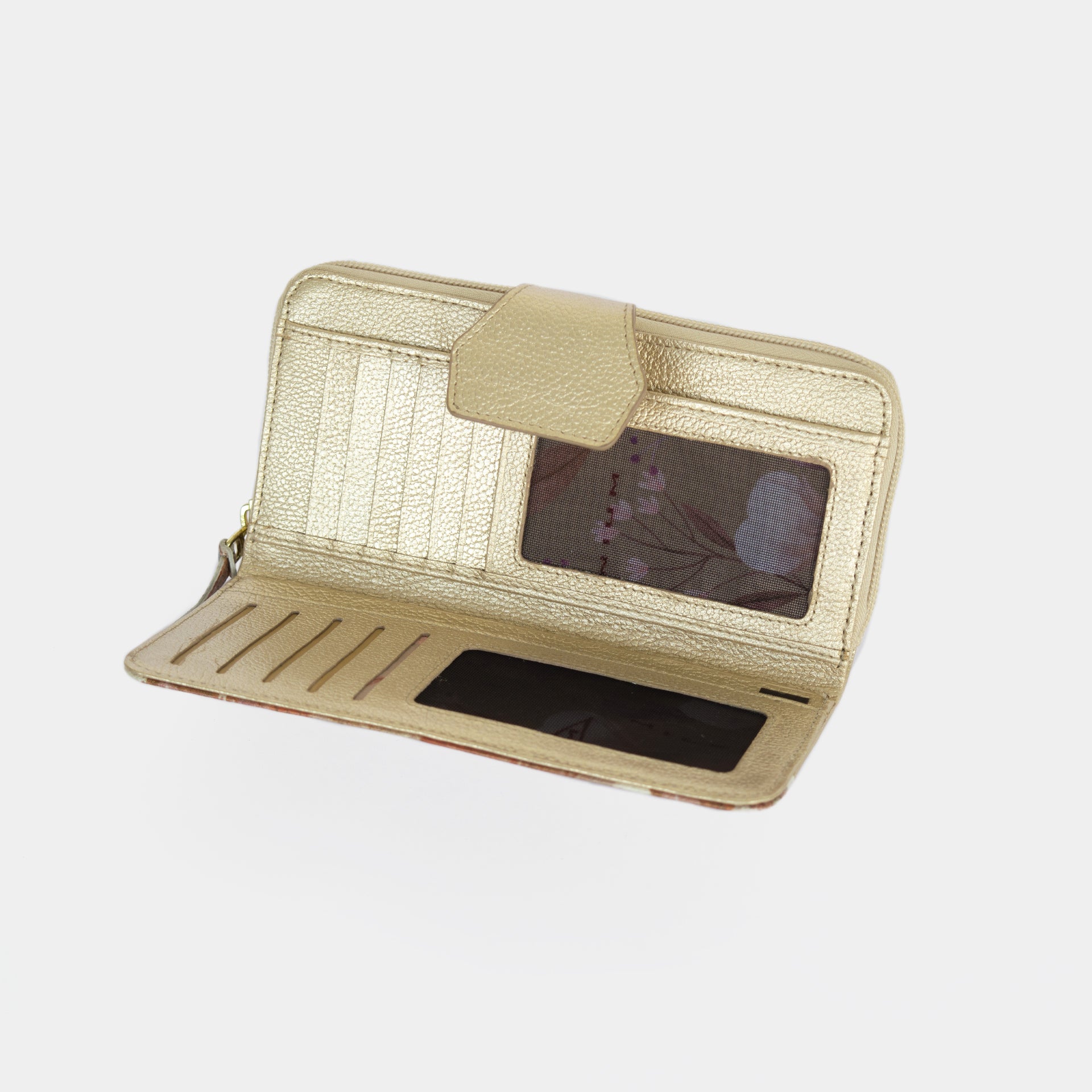 BILLETERA DAMA GRANDE CUERO DORADO 211
