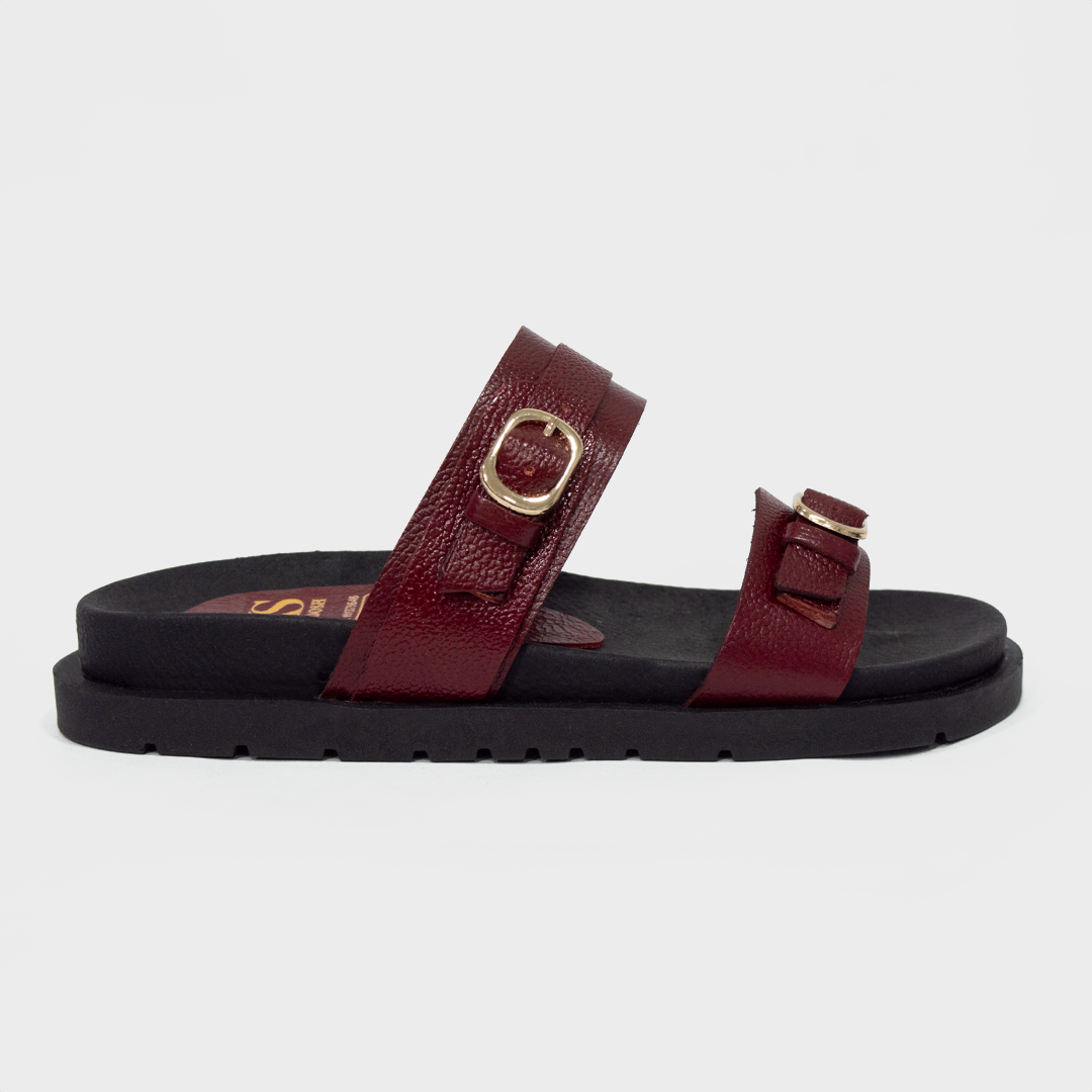 Diseñadas para quienes valoran el confort sin sacrificar el estilo. Estas sandalias están elaboradas en 100% cuero legítimo, con un acabado texturizado premium que aporta elegancia y durabilidad. Cuentan con dos tiras ajustables con hebillas doradas que brindan un toque cómodo y permiten un ajuste perfecto al pie.