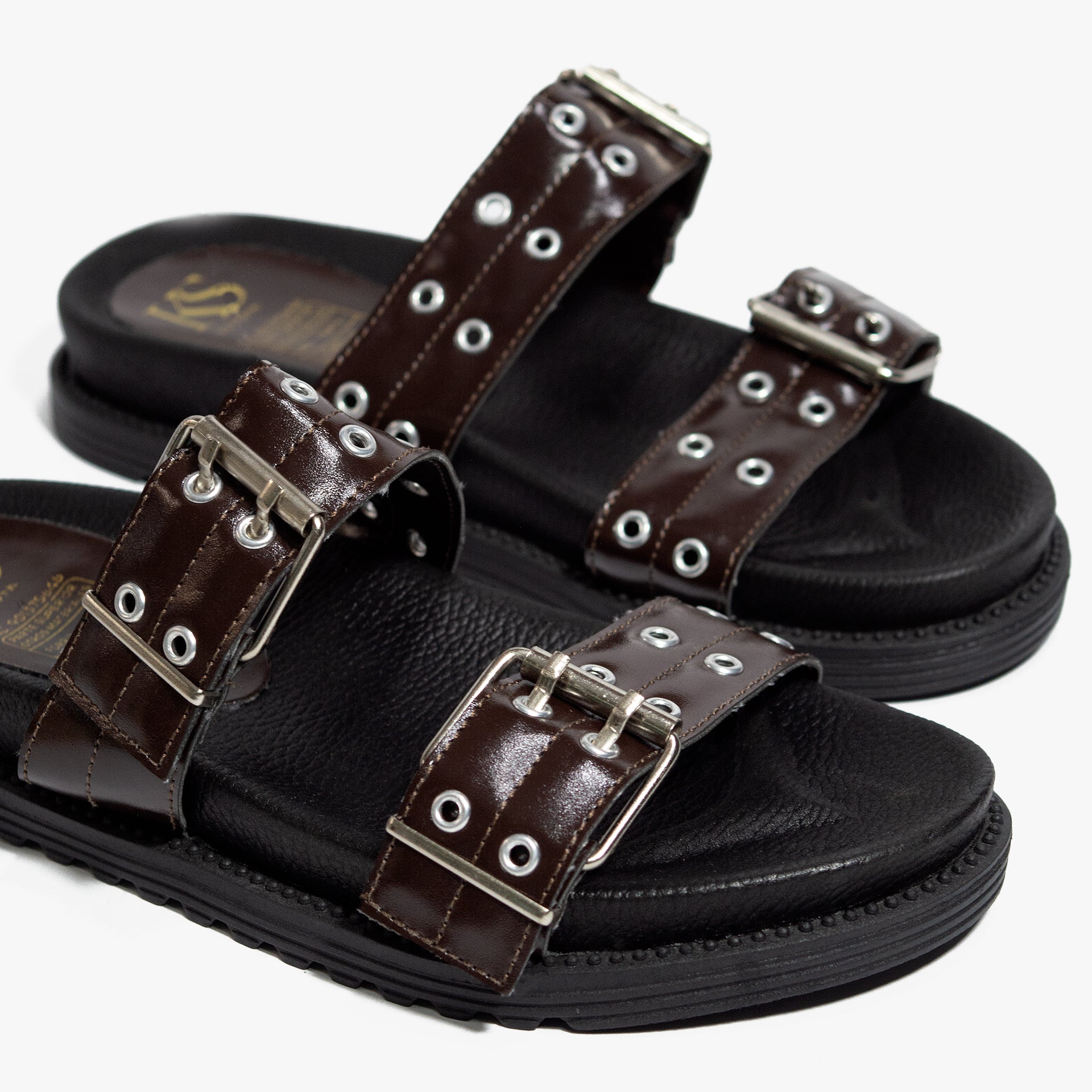 - Dos tiras anchas con hebillas plateadas ajustables: permiten mejor ajuste y mayor seguridad.