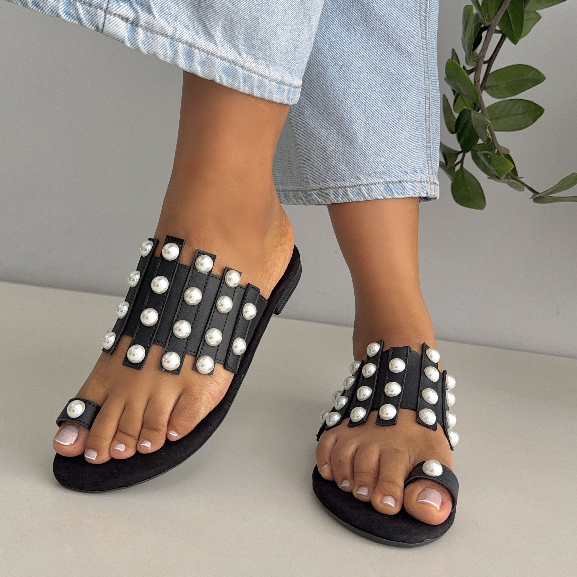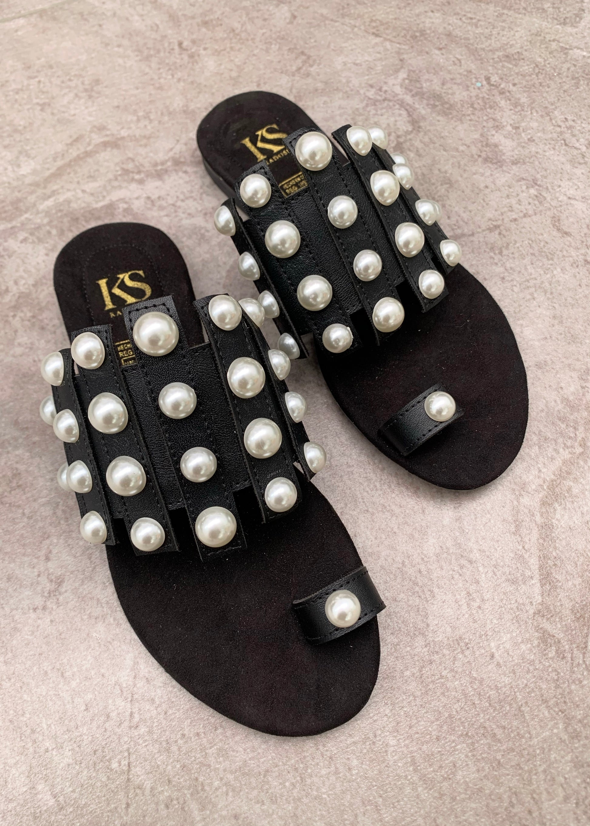 Capellada en sintético Negro, taches de perlas