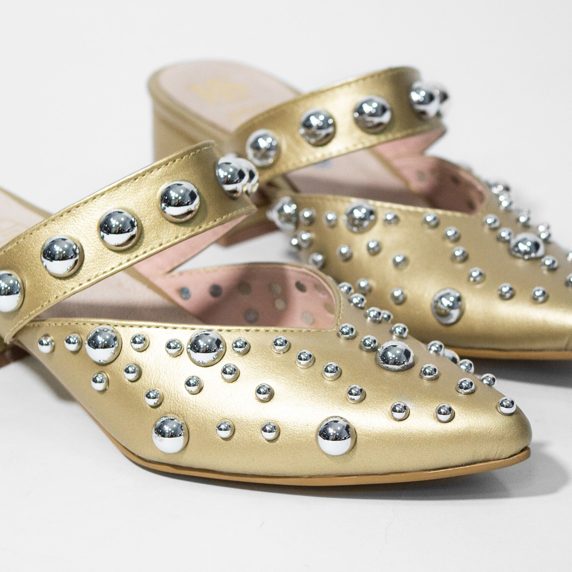 Últimas tallas - ZUECOS IRINA 100% CUERO DORADO