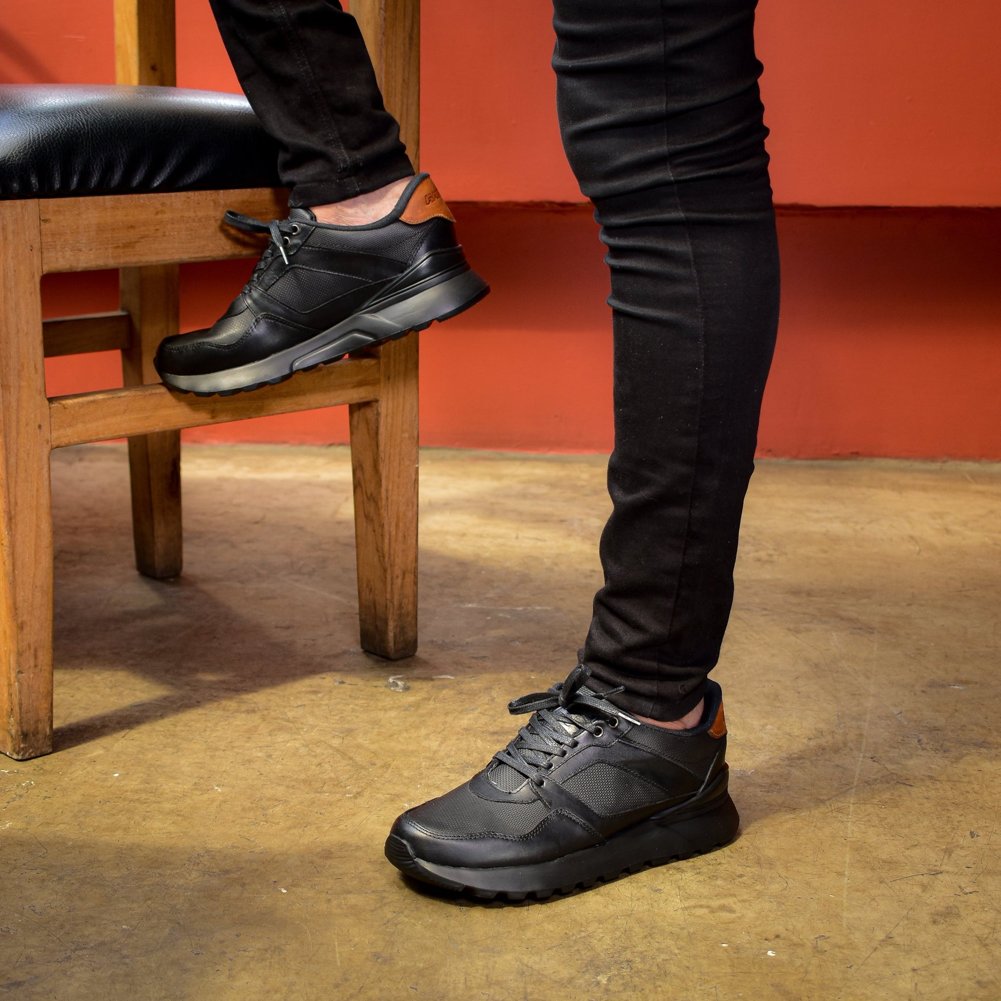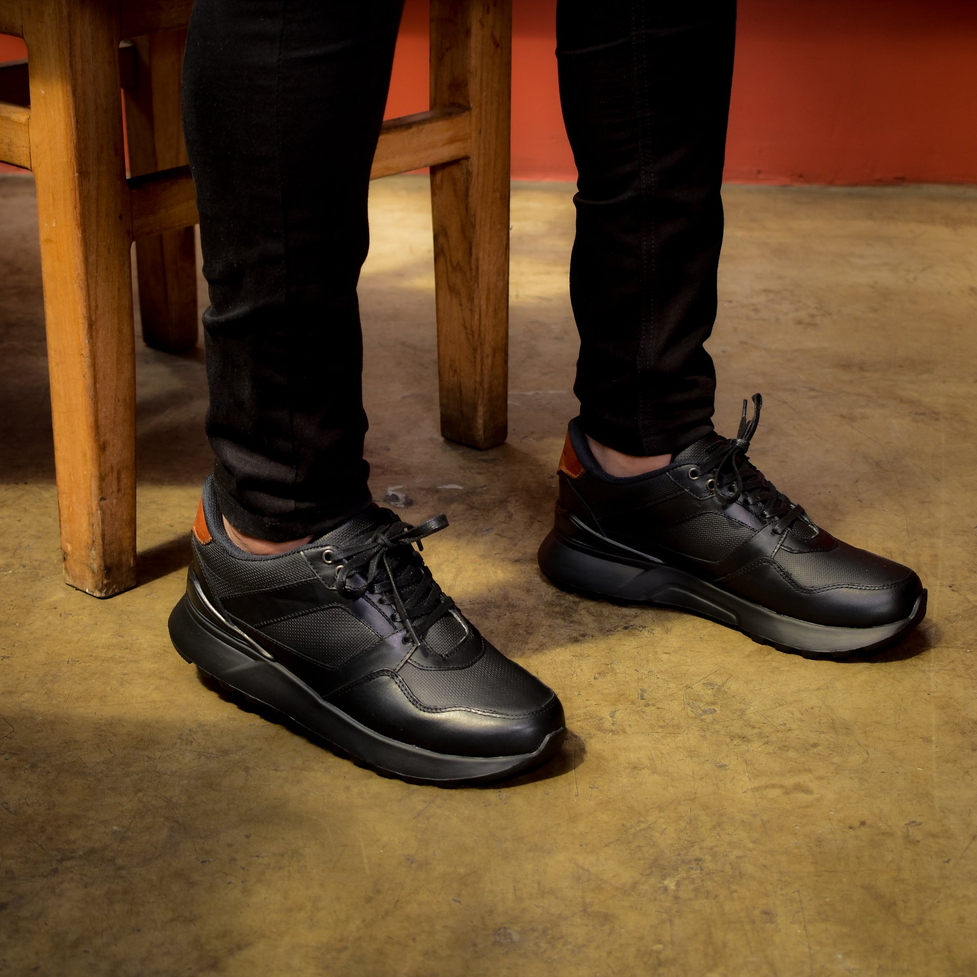 Cuero negro, cordones de encerados y suela en Eva ultra liviana, plantilla confort.