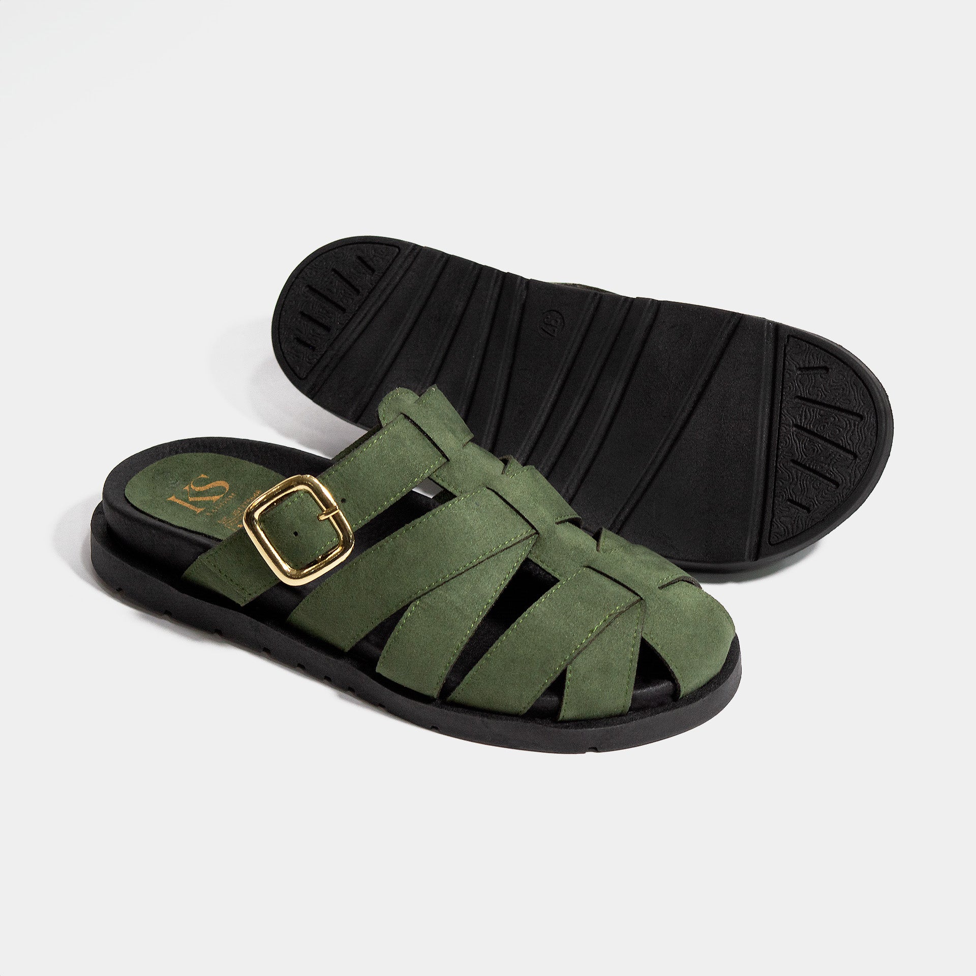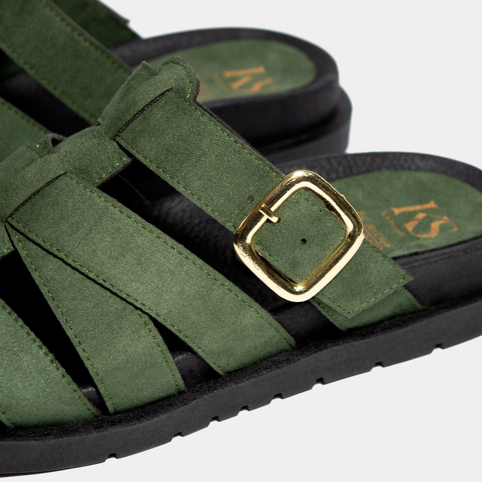 Descubre la mezcla perfecta entre diseño artesanal y confort moderno con nuestras plataformas tipo sueco en cuero gamuzado beige. Su suela negra ultra liviana brinda soporte y descanso a tus pies durante todo el día, mientras que el diseño entrecruzado con hebilla dorada ajustable le da un toque único, fresco y elegante. Perfectas para complementar looks relajados sin renunciar a la sofisticación.